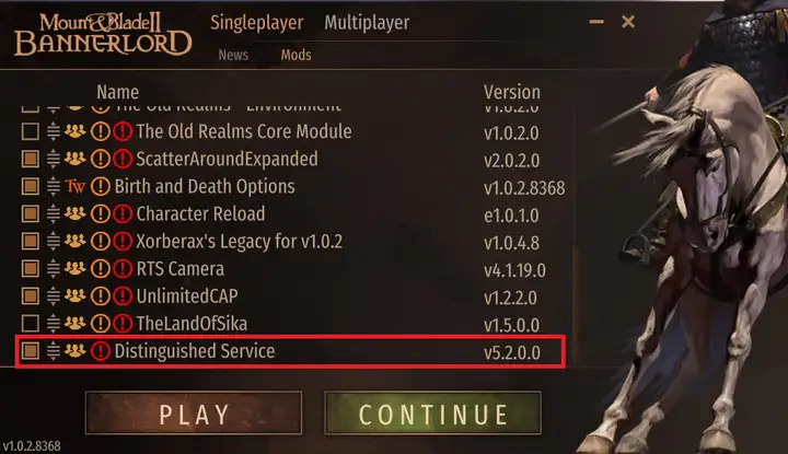 2、“Distinguished Services”放置Modules文件夹后游戏启动器勾选即可。
