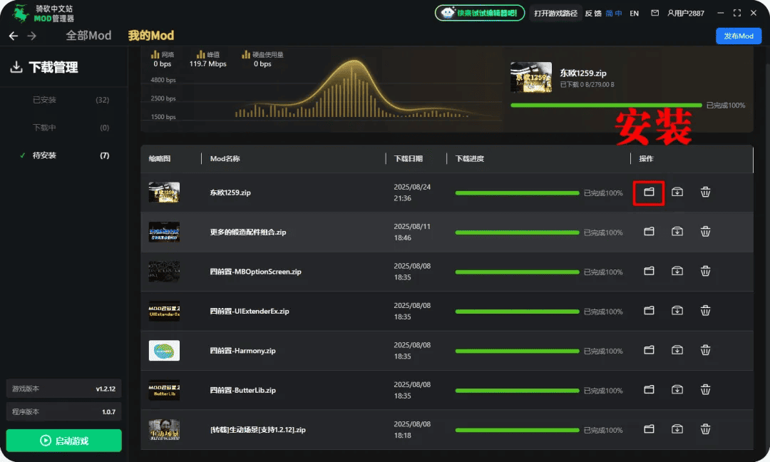 2、打开压缩包,将这个Mod压缩包中的对应文件解压至骑砍2根目录的Modules文件夹中。