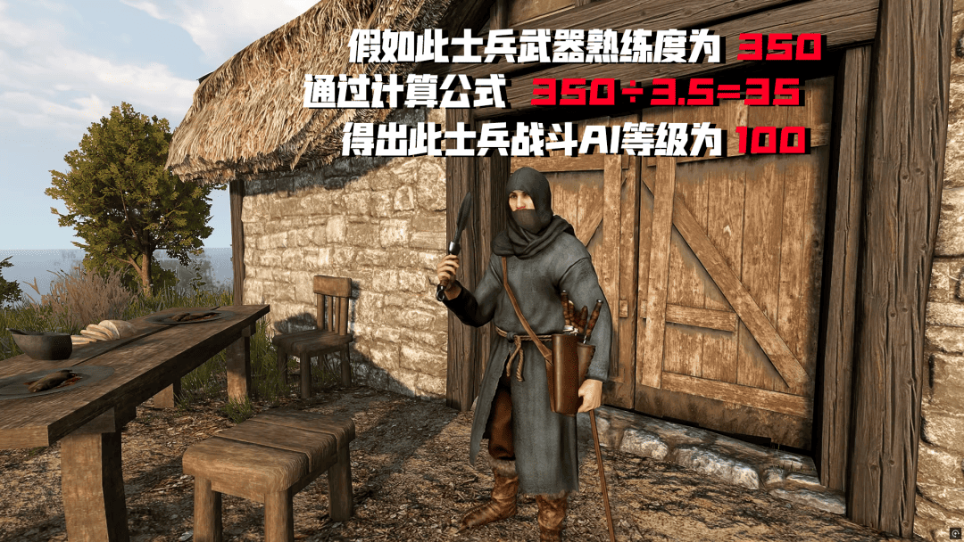给各位骑友举个例子,一个武器熟练度为350的士兵NPC,那么他的战斗AI等级就是100。