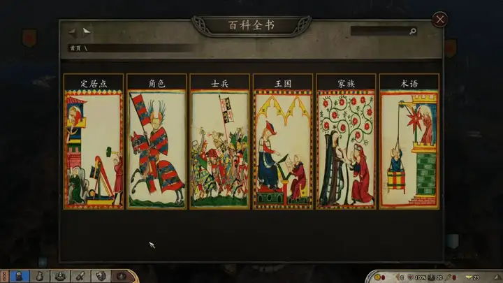 完全重构的UI界面,搭配着中世纪经典壁画中的元素充斥在战役地图,物品栏,百科全书等几乎所有的游戏角落,帮助整个游戏换上了新的衣裳,游历其中,玩家将宛如真正的中世纪领主。