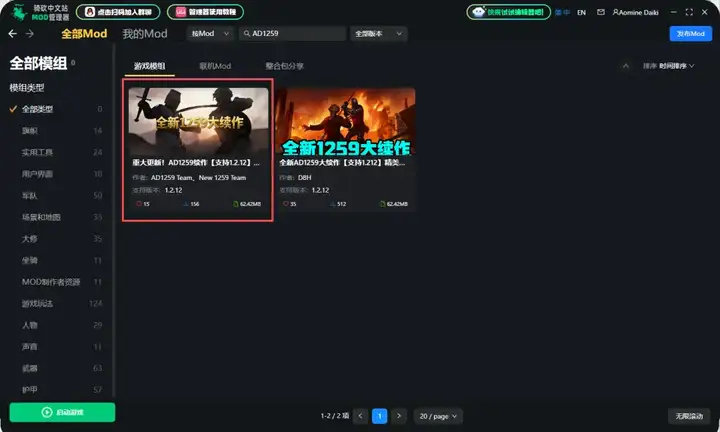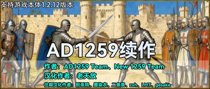《AD1259续作》是基于AD1259的二次创作,骑砍中文站的老天放大大已经组织汉化并发布了最新的中文版本。