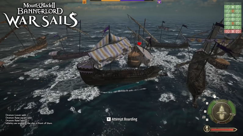 在《战帆》DLC中,我们首次将完整的海战玩法加入到了《骑马与砍杀2:霸主》游戏中,玩家在游戏中将能够指挥自己的船只,率领舰队穿越海洋,参与到大规模的海战之中。