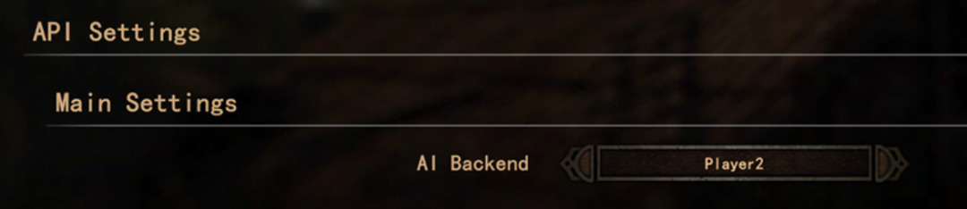 然后进入游戏MOD选项,在AI Backend选择Player2,URL已预设好,无需进行额外操作,在游戏内与任意 NPC 开启对话选择交谈(AI对话)即可。
