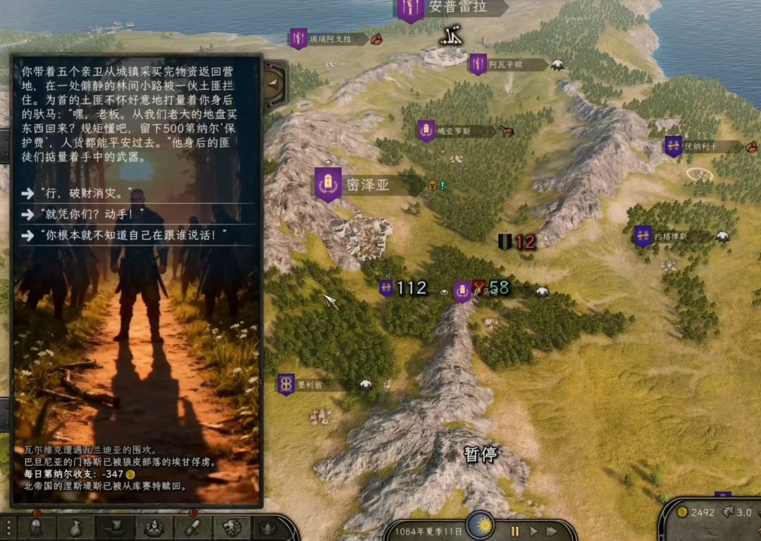 陆地行军事件(15个主事件):在大地图移动时,遭遇特殊天气、神秘商队、遗迹探索或突如其来的遭遇战。