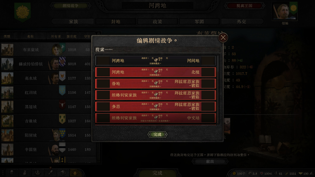 功能上新增了好几个系统:联盟系统、贸易协定、潜行系统、身体互换。剧情里还加入了赫伦堡攻城事件,王国覆灭时的弹窗也加上了具体的王国文本。