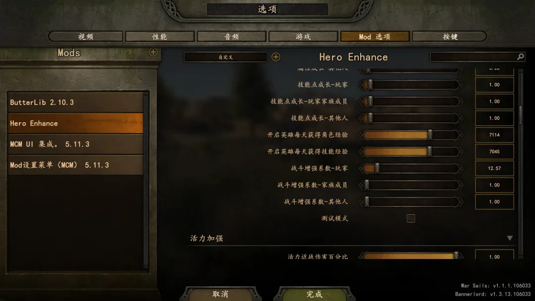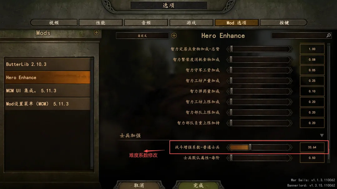 完全自定义设置!打开游戏中的MOD选项,在Hero Enhance界面,大家将能够根据自己的需求,随时调整自己所需要的功能设定,不再千篇一律!