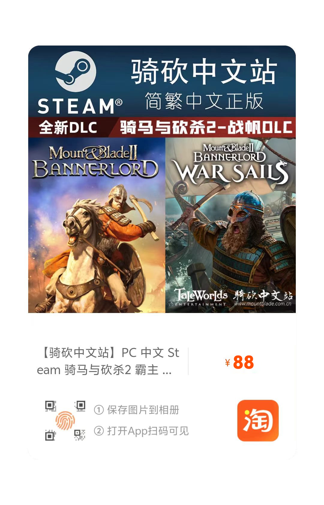 【淘宝】https://e.tb.cn/h.7E5kYnVAE6o7zbq?tk=PDHmUPxqfue MF287 「【骑砍中文站】PC 中文Steam 骑马与砍杀2 霸主DLC 战帆 正版 CDKEY/序列号/激活码」