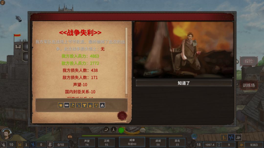 营地中可以做一些准备,获取的情报不是真的情报,有可能敌人的兵力比现在的更多或者更少,如果你不获取情报进入战场后如果敌人兵力大于两倍将直接减少士气。